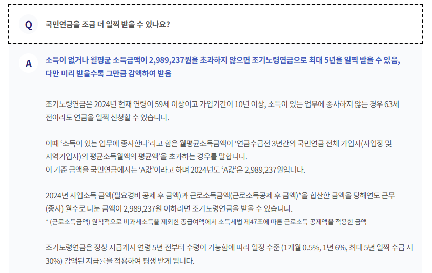 ✔️ 조기수령 신청 후 소득이 발생하면 연금 지급이 중단될 수 있음