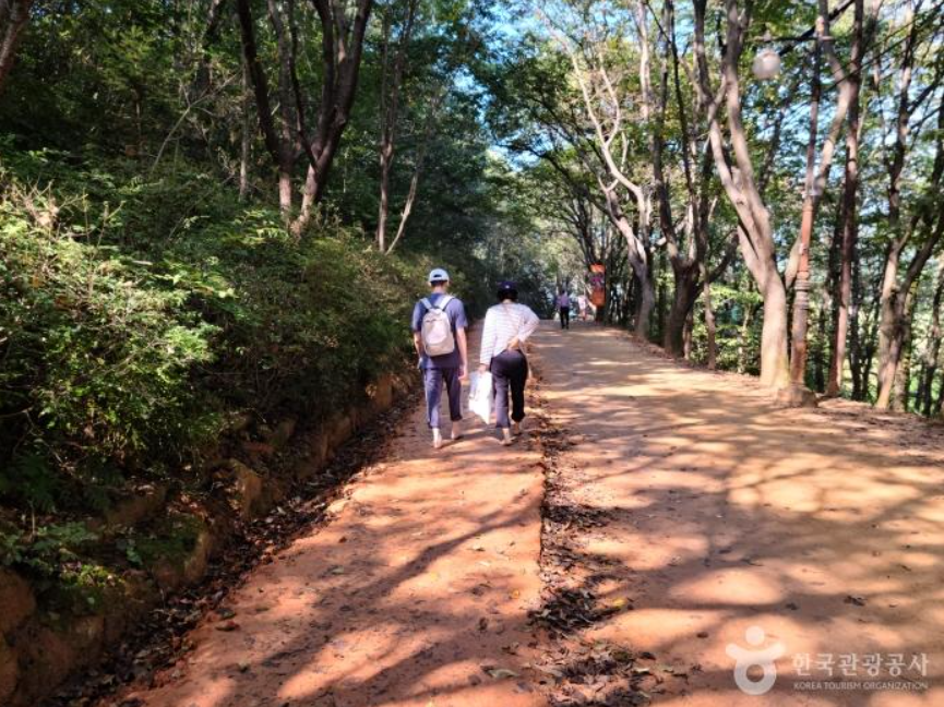 약 4km의 황토길 코스로, 중간중간 쉼터와 벤치가 있어 가족 단위 방문객에게 추천합니다.
