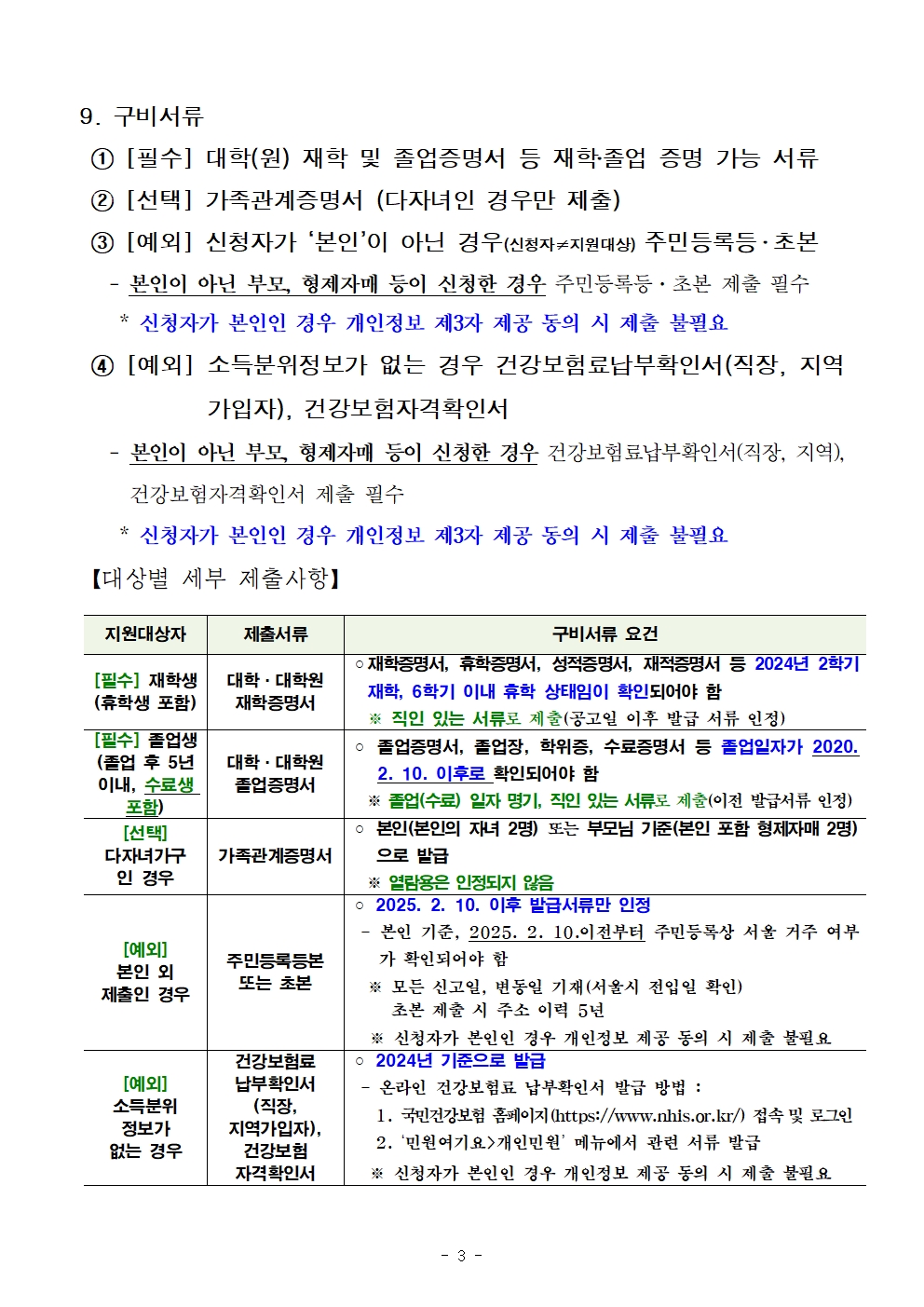 📌 3순위: 소득 8분위 이상 대학(원)생(예산 범위 내 일부 지원)