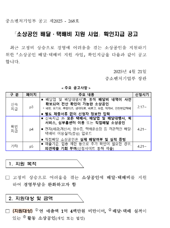 2025년 정부는 고정비 상승과 물류비 부담으로 어려움을 겪는 소상공인을 위해 ‘배달·택배비 지원 사업’을 확대 시행하고 있습니다.