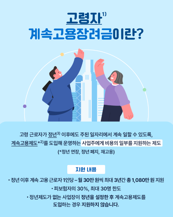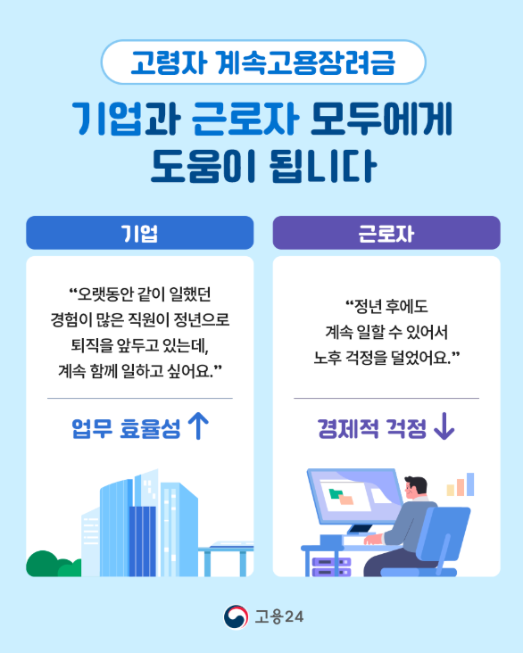 고령 근로자를 계속 고용할 경우 지급되는 정부 장려금입니다.