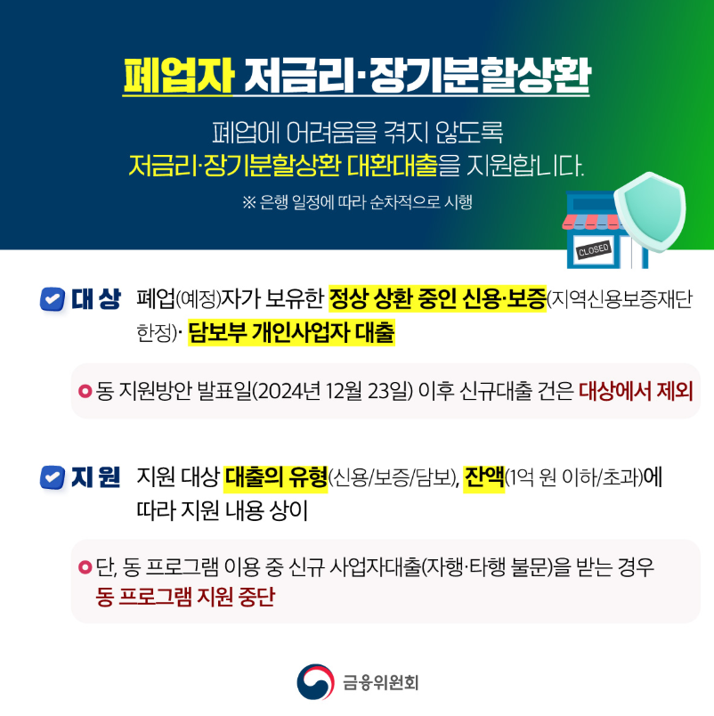 2025년 4월 28일부터 시행되는 ‘폐업자 저금리·장기분할상환 대환대출 제도’로,